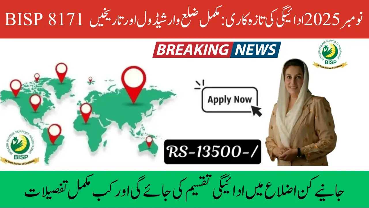 BISP 8171 November 2025 Payment Update; The BISP continues to provide crucial financial support to low-income families across Pakistan. The November 2025 installment under the 8171 program is part of the quarterly cash assistance aimed at helping households meet essential expenses such as food, education, and utility bills. Each eligible household will receive Rs. 13,500, ensuring relief for families struggling with rising living costs.