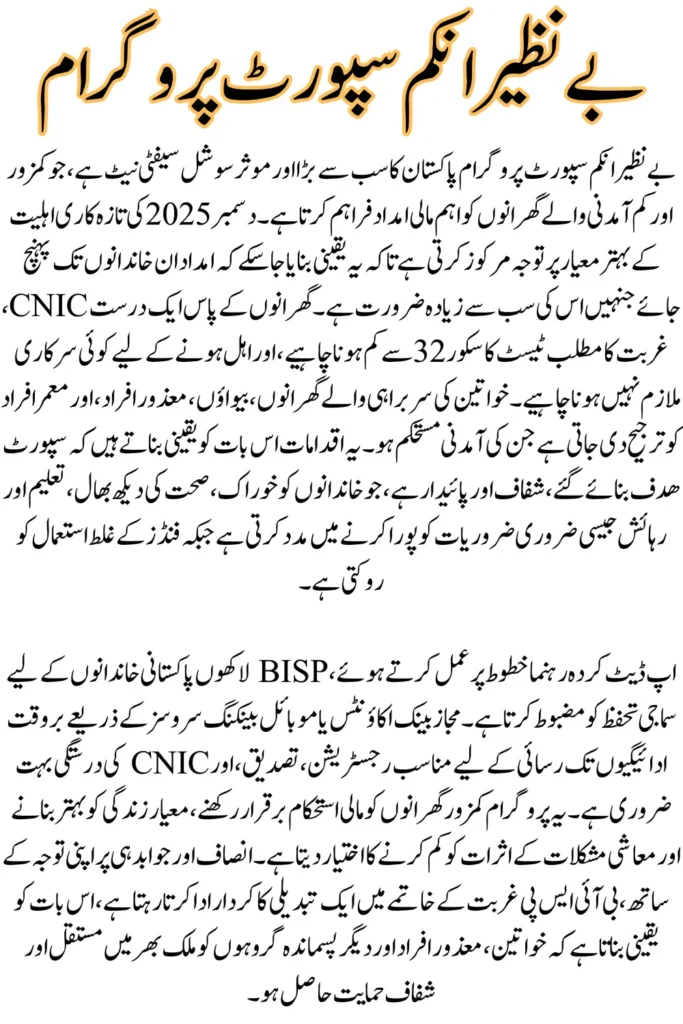 You Can Also Read: BISP Eligibility December Update – Eligibility & New Registration Rules 2025 Latest Complete Guide