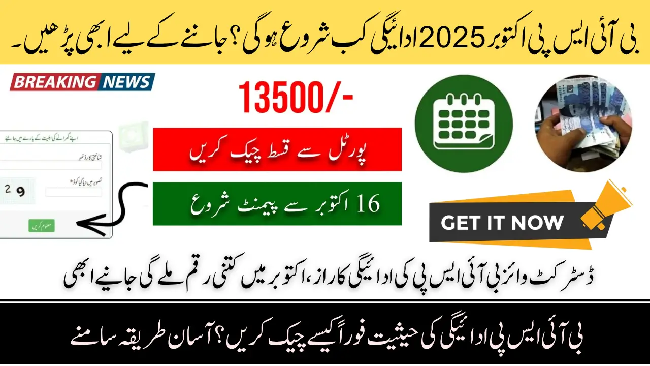 The BISP has started the October 2025 payment cycle. Eligible families will receive Rs. 13,500 for the July–October 2025 period. Payments began on October 16, 2025, in cluster districts, with other regions scheduled in phases.