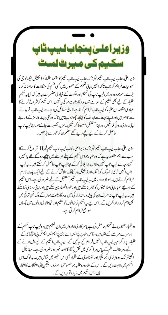 CM Punjab Laptop Scheme Phase 2. The Chief Minister Of Punjab Laptop Scheme Phase II is not just a free laptop program but also a great way to empower the youth of Punjab with education and technology. Thousands of students have benefited from this scheme. Talented students will be able to improve their academic and professional lives. This is a ray of hope for the digital future of Pakistan, which gives equal opportunities to every student and creates awareness of moving towards the future.