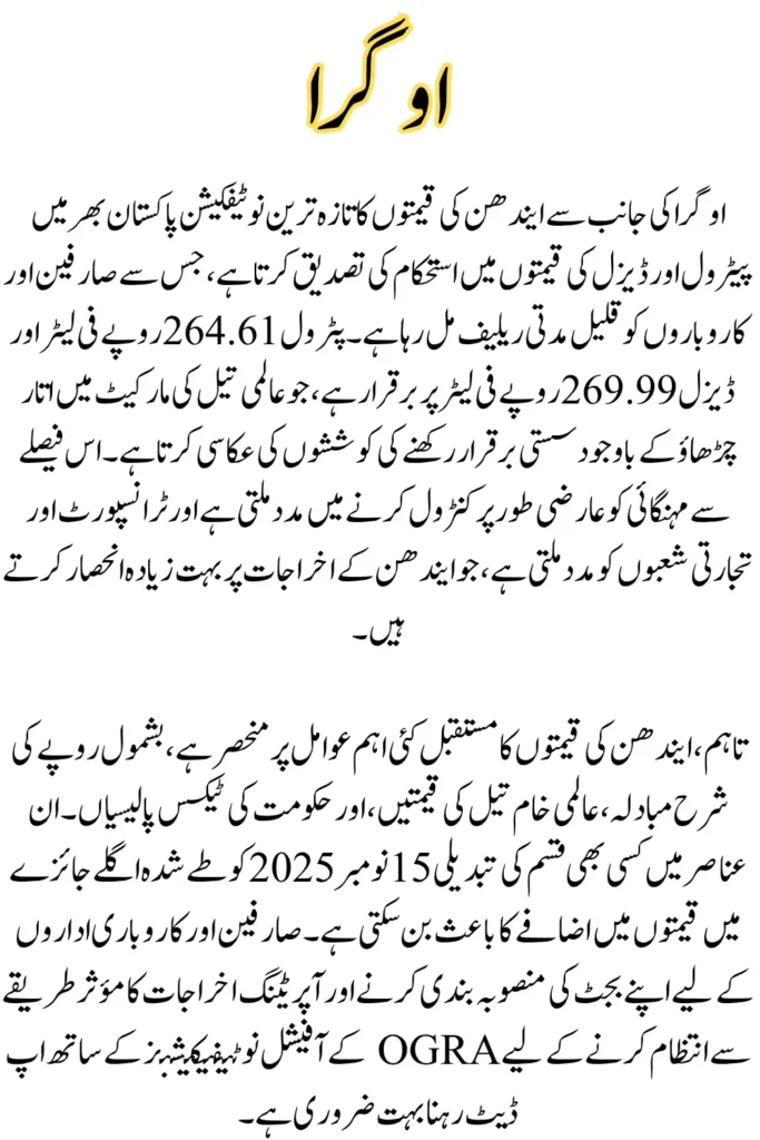 This stable fuel pricing brings relief to motorists, transporters, and households by providing cost predictability for the coming weeks. OGRA’s regular updates help consumers stay informed about future changes and plan their budgets accordingly. Keeping track of these notifications is essential to anticipate potential adjustments in fuel prices that could affect daily expenses and business operations.