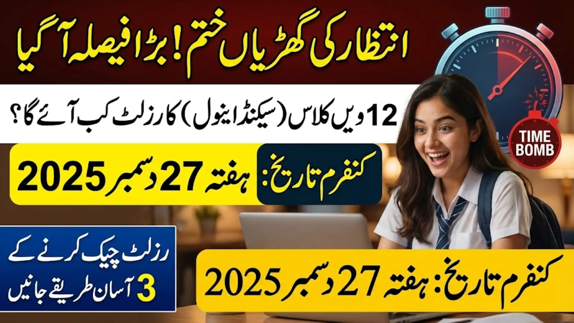 The result will be announced on Saturday, December 27, 2025, at 10:00 am.