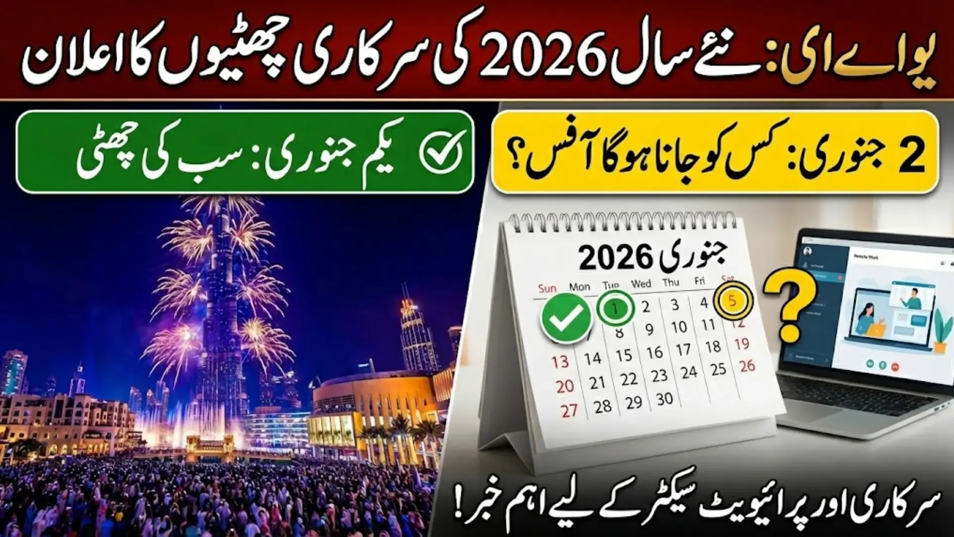 However, the authorities clarified that employees whose duties require physical presence will continue to attend the office. This flexible approach under the UAE New Year Public Holiday 2026 ensures continuity of essential services while offering convenience to most staff.